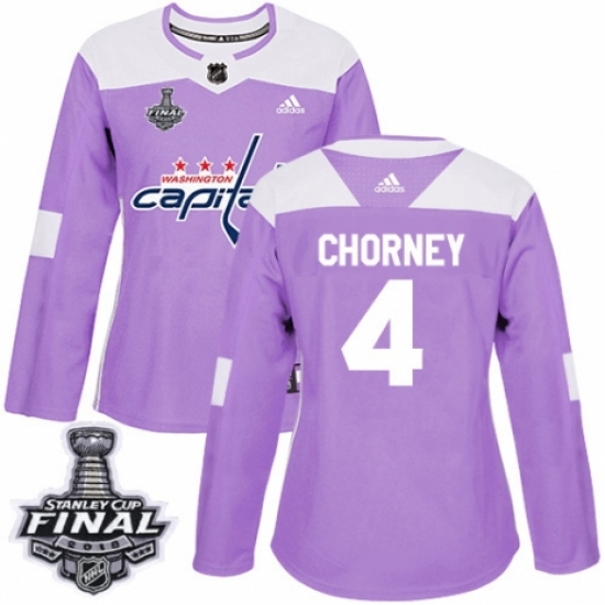 Women's Adidas Washington Capitals #4 Taylor Chorney Authentic Purple Fights Cancer Practice 2018 Stanley Cup Final NHL Jersey