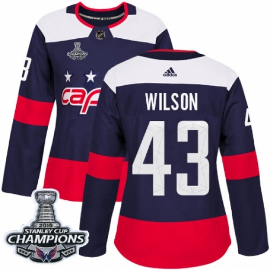 Women's Adidas Washington Capitals #43 Tom Wilson Authentic Navy Blue 2018 Stadium Series 2018 Stanley Cup Final Champions NHL Jersey