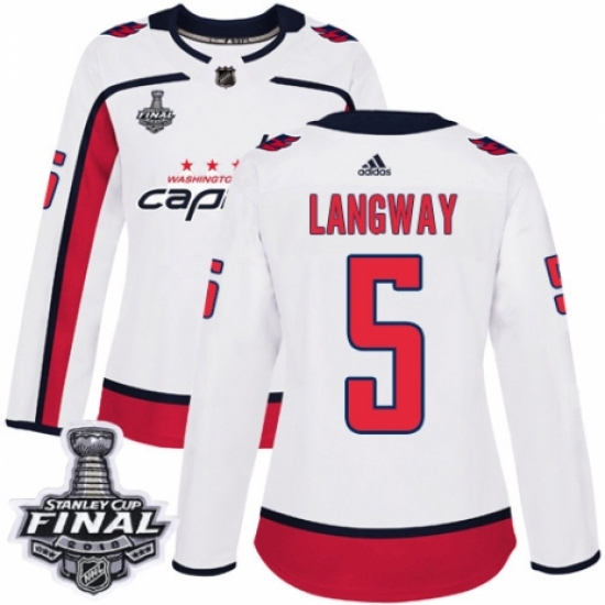 Women's Adidas Washington Capitals #5 Rod Langway Authentic White Away 2018 Stanley Cup Final NHL Jersey