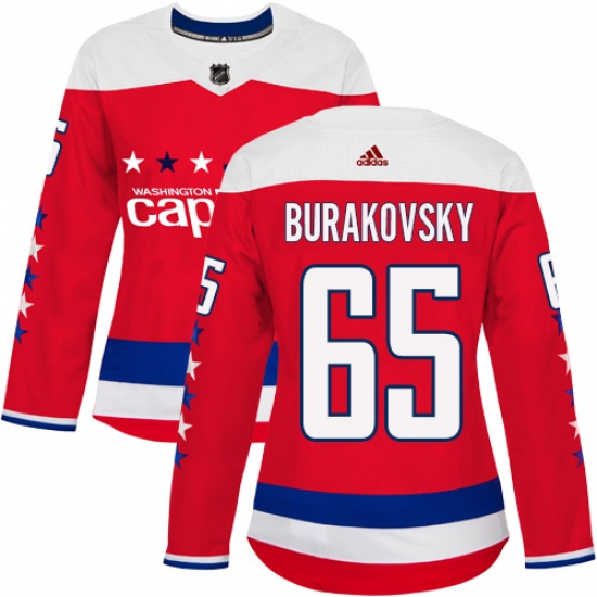 Women's Adidas Washington Capitals #65 Andre Burakovsky Authentic Red Alternate NHL Jersey