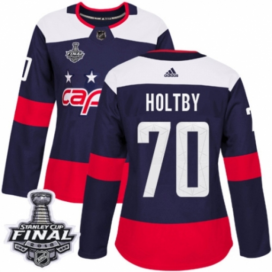>Women's Adidas Washington Capitals #70 Braden Holtby Authentic Navy Blue 2018 Stadium Series 2018 Stanley Cup Final NHL Jersey