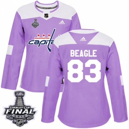 Women's Adidas Washington Capitals #83 Jay Beagle Authentic Purple Fights Cancer Practice 2018 Stanley Cup Final NHL Jersey