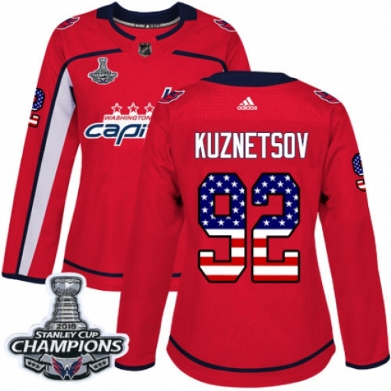 Women's Adidas Washington Capitals #92 Evgeny Kuznetsov Authentic Red USA Flag Fashion 2018 Stanley Cup Final Champions NHL Jersey