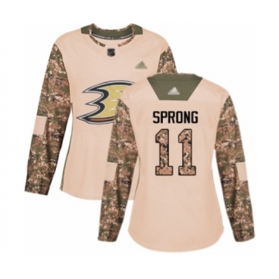 Women's Anaheim Ducks #11 Daniel Sprong Authentic Camo Veterans Day Practice Hockey Jersey