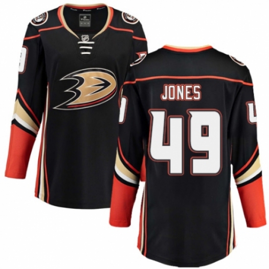 >Women's Anaheim Ducks #49 Max Jones Authentic Black Home Fanatics Branded Breakaway NHL Jersey
