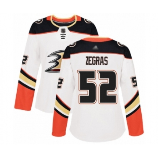 Women's Anaheim Ducks #52 Trevor Zegras Authentic White Away Hockey Jersey