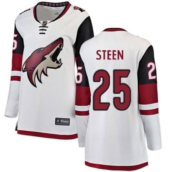 Home>NHL>Arizona Coyotes>Thomas Steen>Women's Arizona Coyotes #25 Thomas Steen Authentic White Away Fanatics Branded Breakaway NHL Jersey