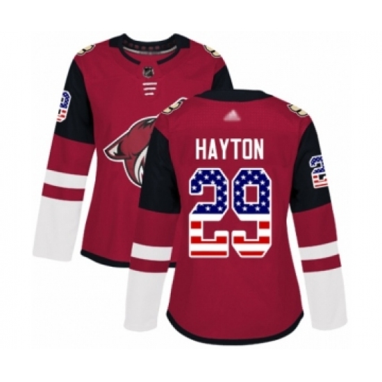 Women's Arizona Coyotes #29 Barrett Hayton Authentic Red USA Flag Fashion Hockey Jersey