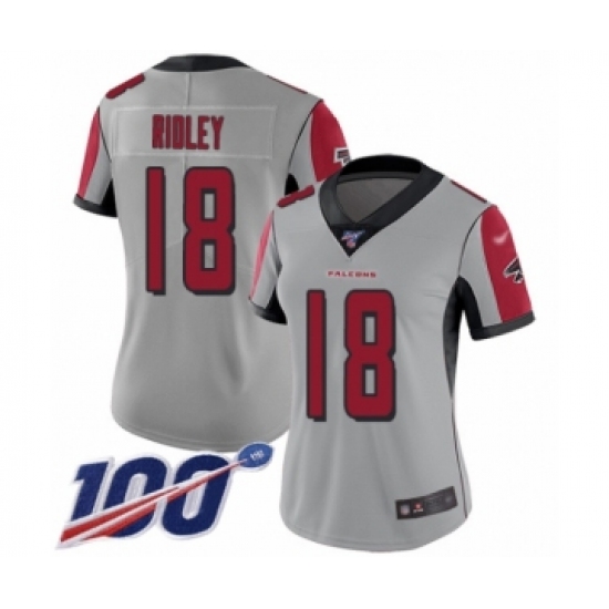 >Women's Atlanta Falcons #18 Calvin Ridley Limited Silver Inverted Legend 100th Season Football Jersey