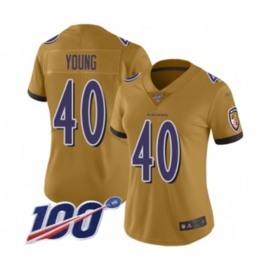 >Women's Baltimore Ravens #40 Kenny Young Limited Gold Inverted Legend 100th Season Football Jersey