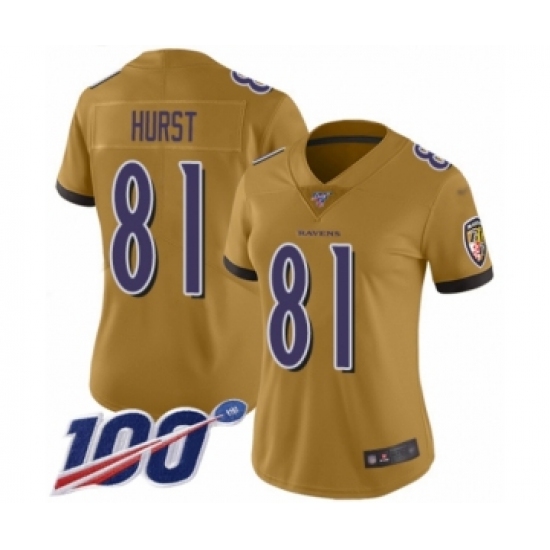 Women's Baltimore Ravens #81 Hayden Hurst Limited Gold Inverted Legend 100th Season Football Jersey