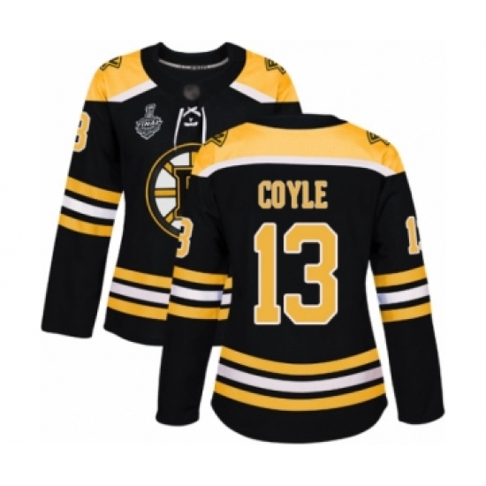 >Women's Boston Bruins #13 Charlie Coyle Authentic Black Home 2019 Stanley Cup Final Bound Hockey Jersey