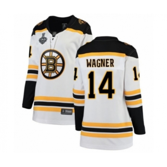 >Women's Boston Bruins #14 Chris Wagner Authentic White Away Fanatics Branded Breakaway 2019 Stanley Cup Final Bound Hockey Jersey