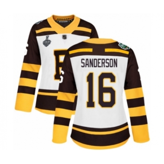 >Women's Boston Bruins #16 Derek Sanderson Authentic White Winter Classic 2019 Stanley Cup Final Bound Hockey Jersey