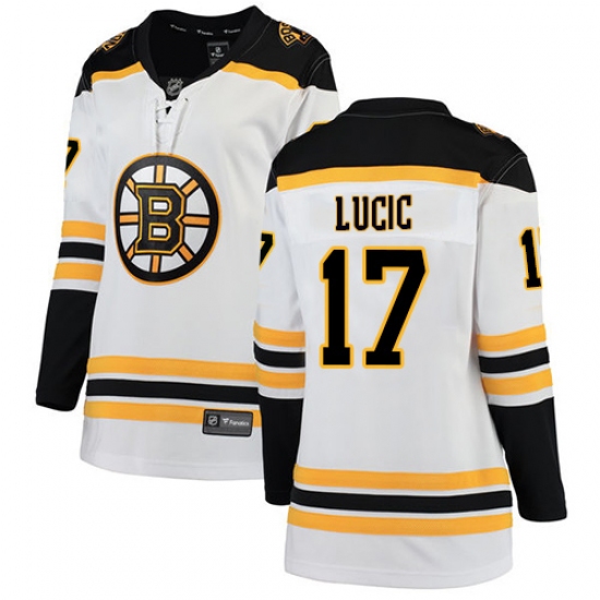 Home>NHL>Boston Bruins>Milan Lucic>Women's Boston Bruins #17 Milan Lucic Authentic White Away Fanatics Branded Breakaway NHL Jersey