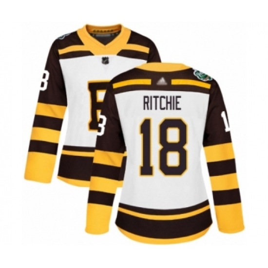 >Women's Boston Bruins #18 Brett Ritchie Authentic White 2019 Winter Classic Hockey Jersey