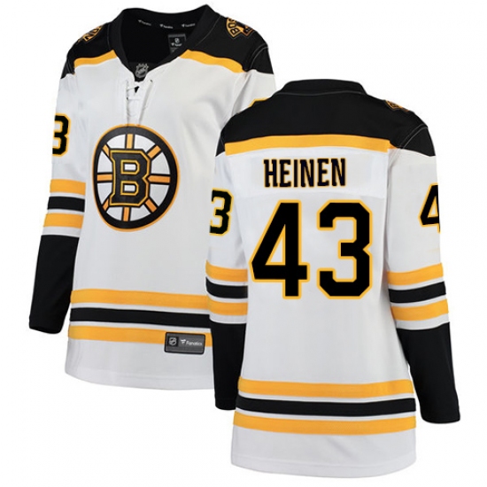 Home>NHL>Boston Bruins>Danton Heinen>Women's Boston Bruins #43 Danton Heinen Authentic White Away Fanatics Branded Breakaway NHL Jersey
