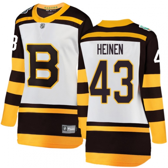 >Women's Boston Bruins #43 Danton Heinen White 2019 Winter Classic Fanatics Branded Breakaway NHL Jersey