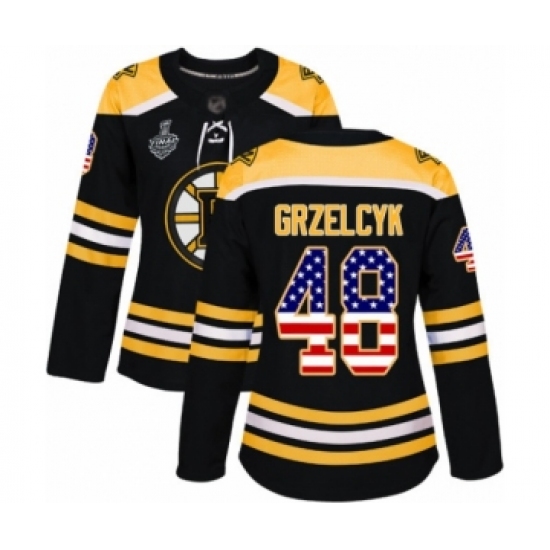 Women's Boston Bruins #48 Matt Grzelcyk Authentic Black USA Flag Fashion 2019 Stanley Cup Final Bound Hockey Jersey