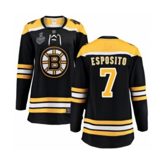 >Women's Boston Bruins #7 Phil Esposito Authentic Black Home Fanatics Branded Breakaway 2019 Stanley Cup Final Bound Hockey Jersey