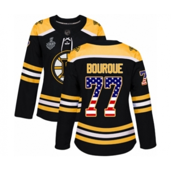 Women's Boston Bruins #77 Ray Bourque Authentic Black USA Flag Fashion 2019 Stanley Cup Final Bound Hockey Jersey