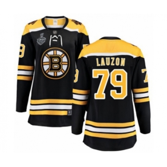 >Women's Boston Bruins #79 Jeremy Lauzon Authentic Black Home Fanatics Branded Breakaway 2019 Stanley Cup Final Bound Hockey Jersey