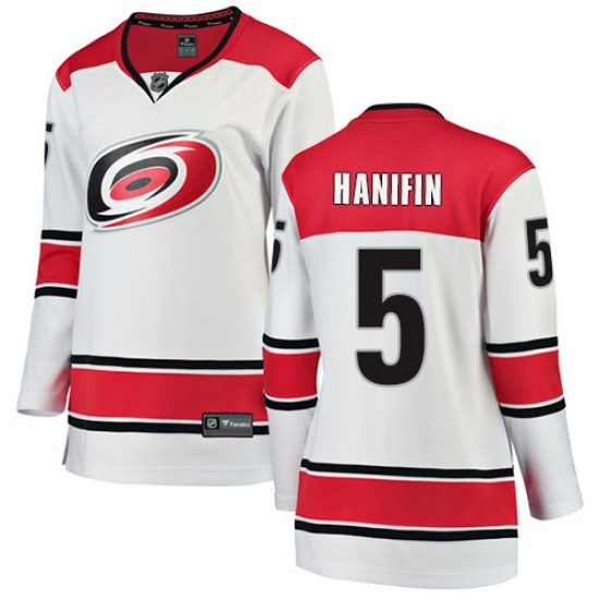 Women's Carolina Hurricanes #5 Noah Hanifin Authentic White Away Fanatics Branded Breakaway NHL Jersey