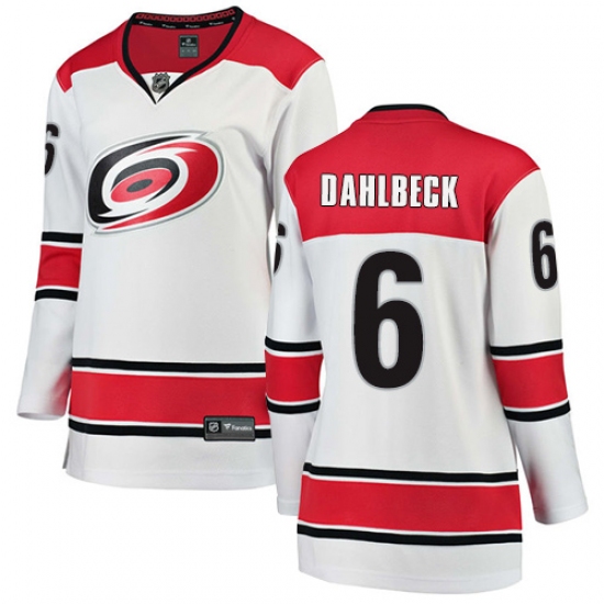 Home>NHL>Carolina Hurricanes>Klas Dahlbeck>Women's Carolina Hurricanes #6 Klas Dahlbeck Authentic White Away Fanatics Branded Breakaway NHL Jersey