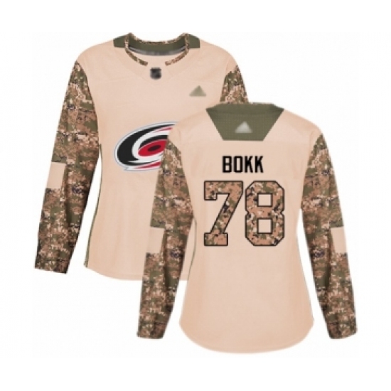 Women's Carolina Hurricanes #78 Dominik Bokk Authentic Camo Veterans Day Practice Hockey Jersey