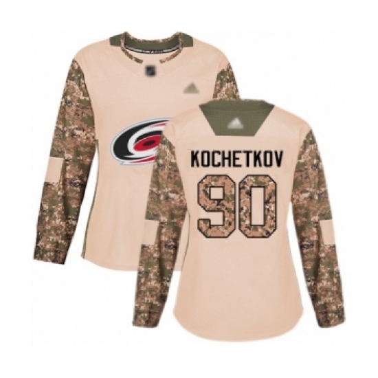 >Women's Carolina Hurricanes #90 Pyotr Kochetkov Authentic Camo Veterans Day Practice Hockey Jersey