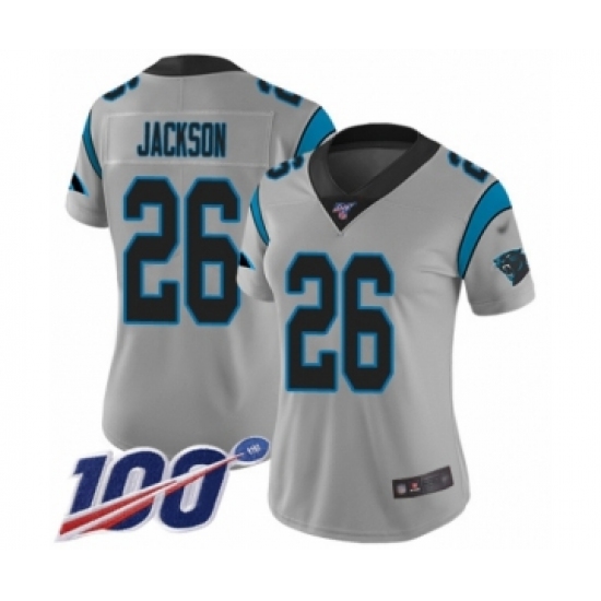 Women's Carolina Panthers #26 Donte Jackson Silver Inverted Legend Limited 100th Season Football Jersey