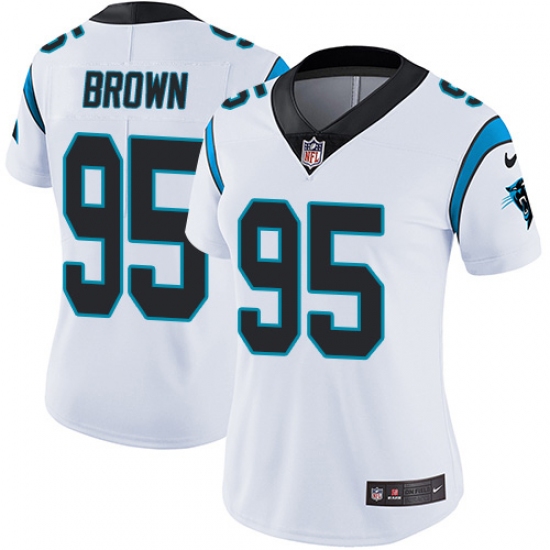>Women's Carolina Panthers #95 Derrick Brown White Stitched NFL Vapor Untouchable Limited Jersey
