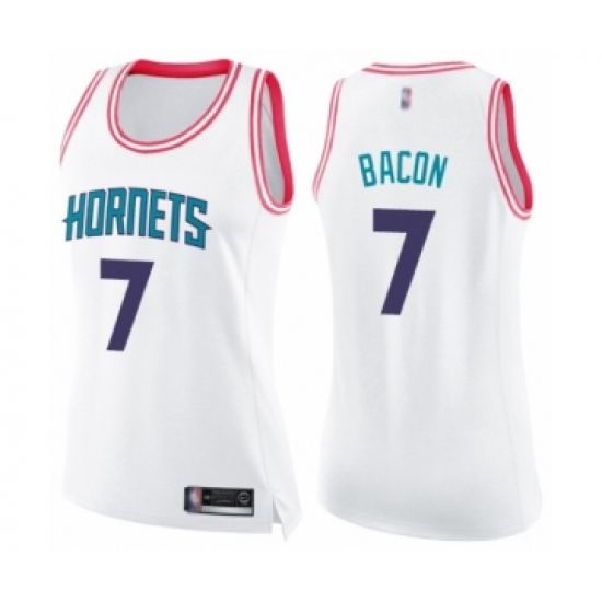 >Women's Charlotte Hornets #7 Dwayne Bacon Swingman White Pink Fashion Basketball Jersey