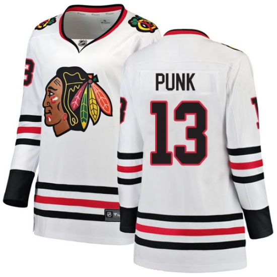 Home>NHL>Chicago Blackhawks>CM Punk>Women's Chicago Blackhawks #13 CM Punk Authentic White Away Fanatics Branded Breakaway NHL Jersey