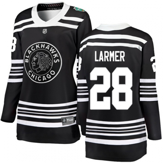 Women's Chicago Blackhawks #28 Steve Larmer Authentic Black Alternate Hockey Jersey