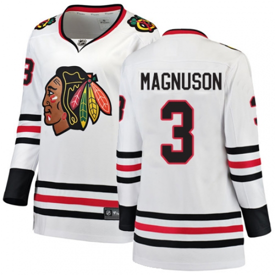 Home>NHL>Chicago Blackhawks>Keith Magnuson>Women's Chicago Blackhawks #3 Keith Magnuson Authentic White Away Fanatics Branded Breakaway NHL Jersey