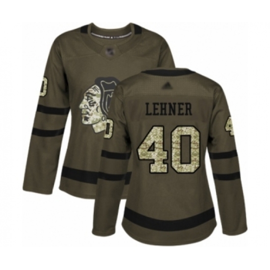 Women's Chicago Blackhawks #40 Robin Lehner Authentic Green Salute to Service Hockey Jersey