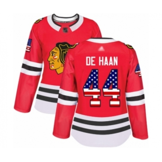 Women's Chicago Blackhawks #44 Calvin De Haan Authentic Red USA Flag Fashion Hockey Jersey