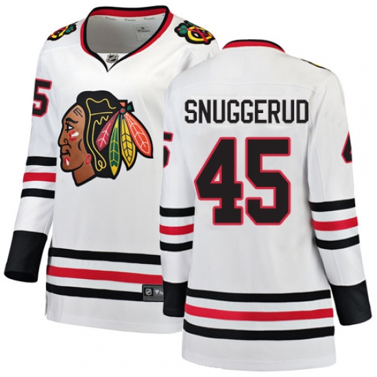 Home>NHL>Chicago Blackhawks>Luc Snuggerud>Women's Chicago Blackhawks #45 Luc Snuggerud Authentic White Away Fanatics Branded Breakaway NHL Jersey