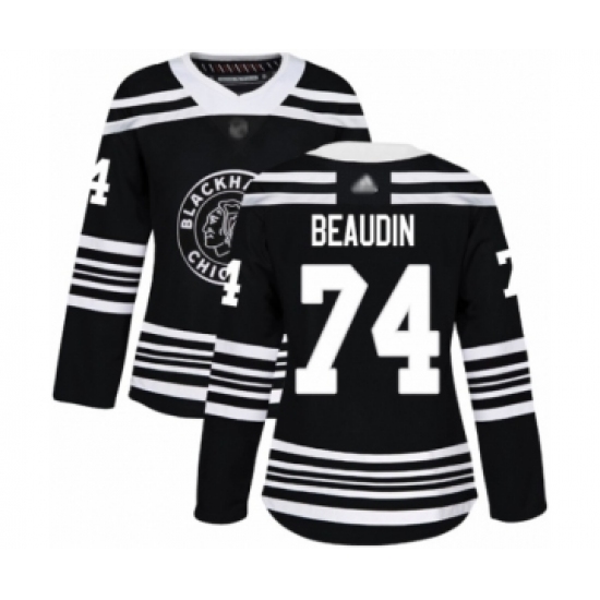 >Women's Chicago Blackhawks #74 Nicolas Beaudin Authentic Black Alternate Hockey Jersey