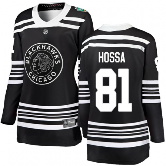 Women's Chicago Blackhawks #81 Marian Hossa Authentic Black Alternate Hockey Jersey