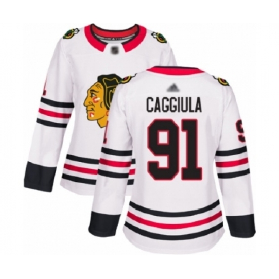 >Women's Chicago Blackhawks #91 Drake Caggiula Authentic White Away Hockey Jersey