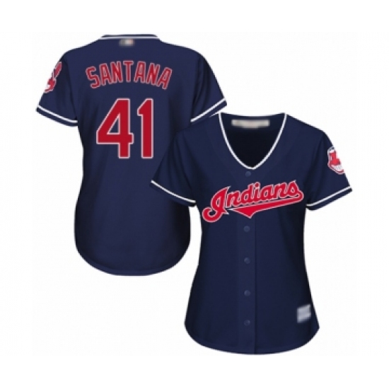 Women's Cleveland Indians #41 Carlos Santana Authentic Navy Blue Alternate 1 Cool Base Baseball Jersey