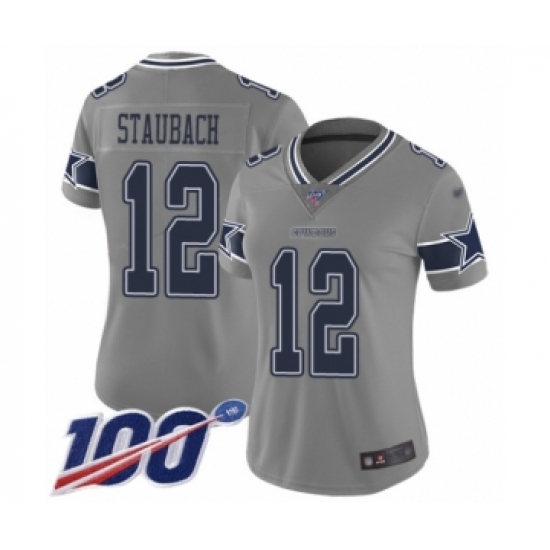 >Women's Dallas Cowboys #12 Roger Staubach Limited Gray Inverted Legend 100th Season Football Jersey