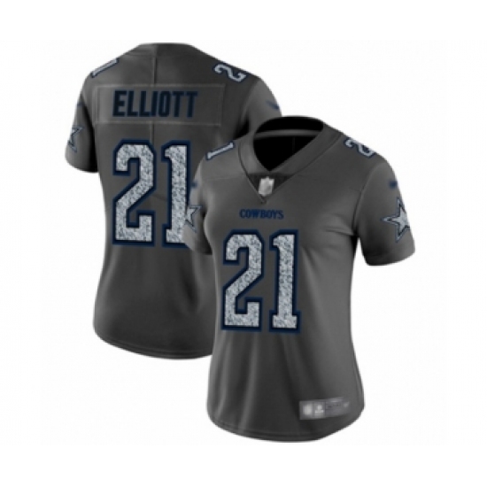 Women's Dallas Cowboys #21 Ezekiel Elliott Gray Static Fashion Limited Football Jersey