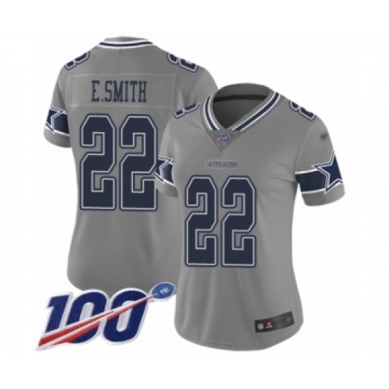 >Women's Dallas Cowboys #22 Emmitt Smith Limited Gray Inverted Legend 100th Season Football Jersey