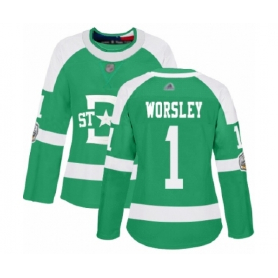 Women's Dallas Stars #1 Gump Worsley Authentic Green 2020 Winter Classic Hockey Jersey