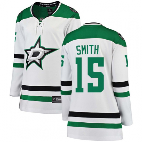 Home>NHL>Dallas Stars>Bobby Smith>Women's Dallas Stars #15 Bobby Smith Authentic White Away Fanatics Branded Breakaway NHL Jersey