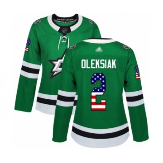 Women's Dallas Stars #2 Jamie Oleksiak Authentic Green USA Flag Fashion Hockey Jersey