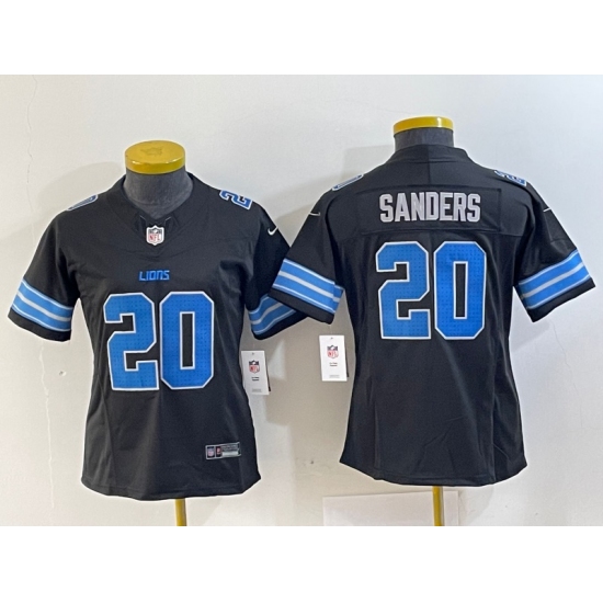 >Women's Detroit Lions #20 Barry Sanders Black 2024 F.U.S.E. 2nd Alternate Vapor Limited Football Stitched Jersey(Run Smaller)